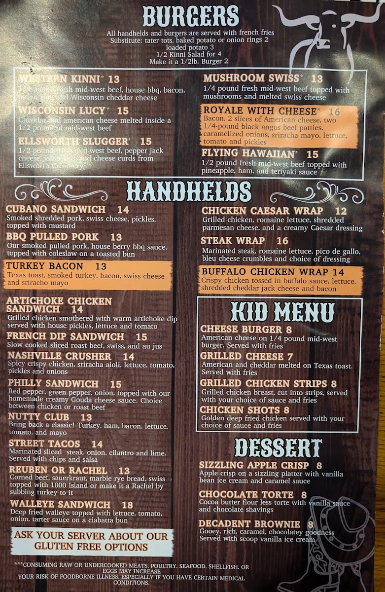 Welcome to Nutty Squirrel Sports Saloon, a delightful culinary gem located at 110 S Main St, River Falls, WI. This vibrant venue offers an eclectic menu ranging from mouthwatering brunch items to savory lunch specials, all crafted with fresh ingredients. Customers rave about the Sizzling Apple Crisp, described as "hot, thick, gooey," and an absolute must-try. The new brunch menu features delectable options like the breakfast burrito and indulgent French toast.